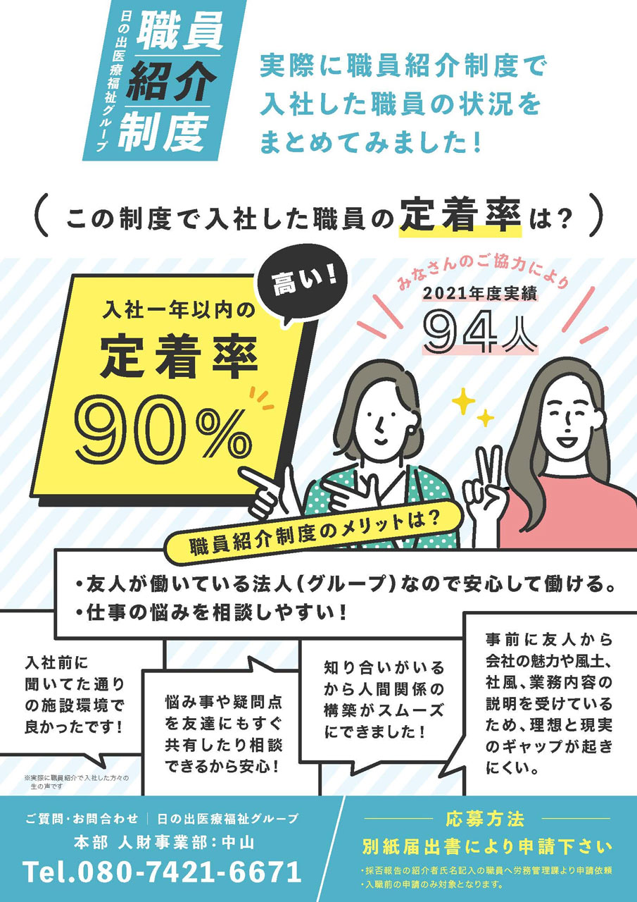 日の出医療福祉グループでは職員紹介制度を設けています。