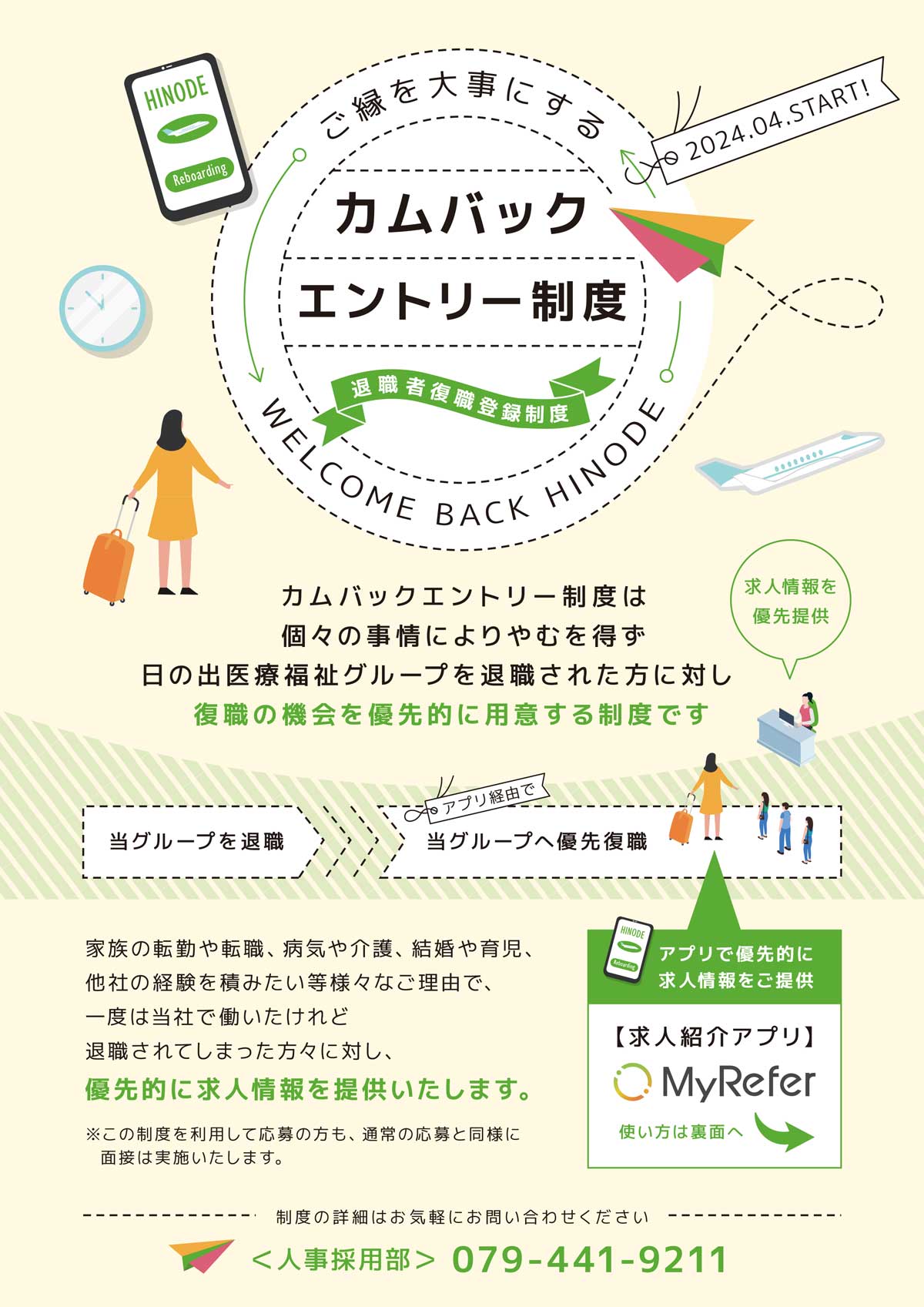 2024年6月より日の出医療福祉グループカムバックエントリー制度を設けました。 個々の事情によりやむを得ず日の出医療福祉グループを退職された方に対し復職の機会を優先的に用意する制度です。 「My Refer」アプリを活用 […]
