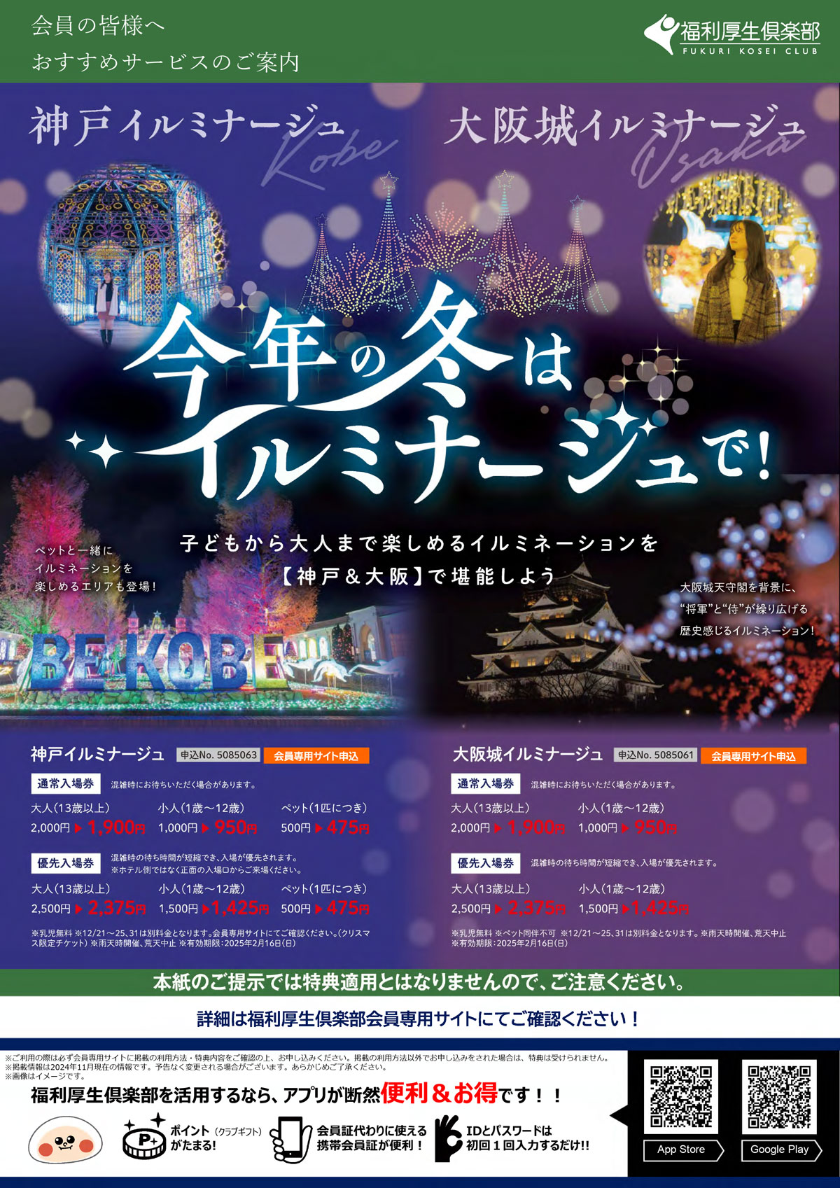 リロクラブ会員限定のイベント情報をご案内します。 PDFのQRコードをよみこみ、会員専用サイトで申込方法・利用方法・特典内容をご確認のうえ、お申し込みください。 ① 今年の冬はイルミナージュで! ・神戸イルミナージュ 【 […]