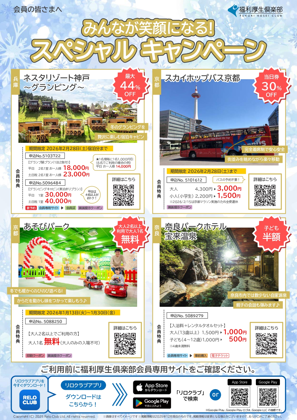 限定イベント リロクラブ 1月・2月会員限定イベント 2026.01.08 掲載 会員限定イベント リロクラブ会員限定のイベント情報をご案内します。 タレントパレット内「リロクラブだより」のPDFより、QRコードをよみこみ、会員専用サイトで申込方法・利用方法・特典内容をご確認のうえ、お申し込みください […] 詳しく見る