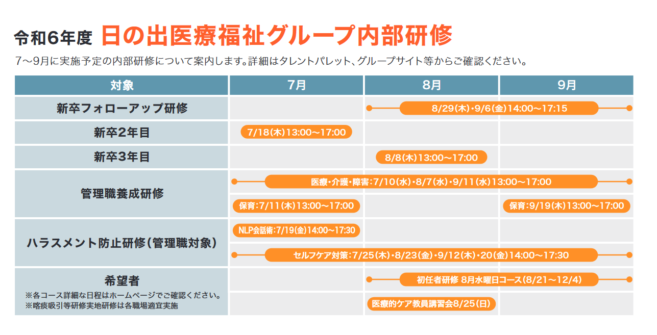 ※喀痰吸引等研修実地研修は各職場で適宜実施します。
