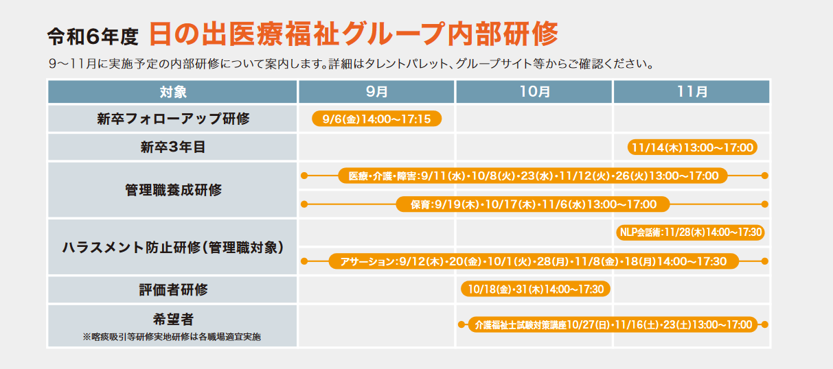 ※喀痰吸引等研修実地研修は各職場で適宜実施します。