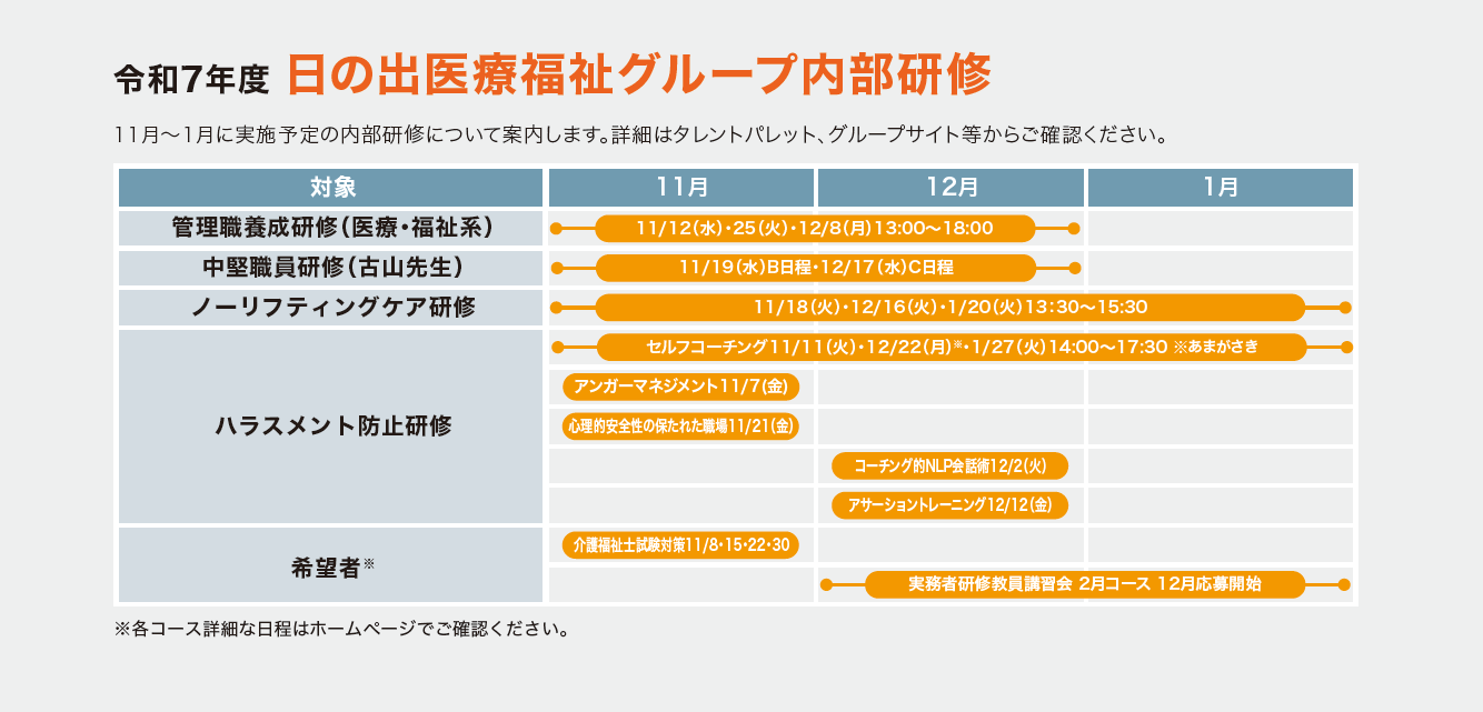 11〜1月に実施予定の内部研修の日程について案内します。